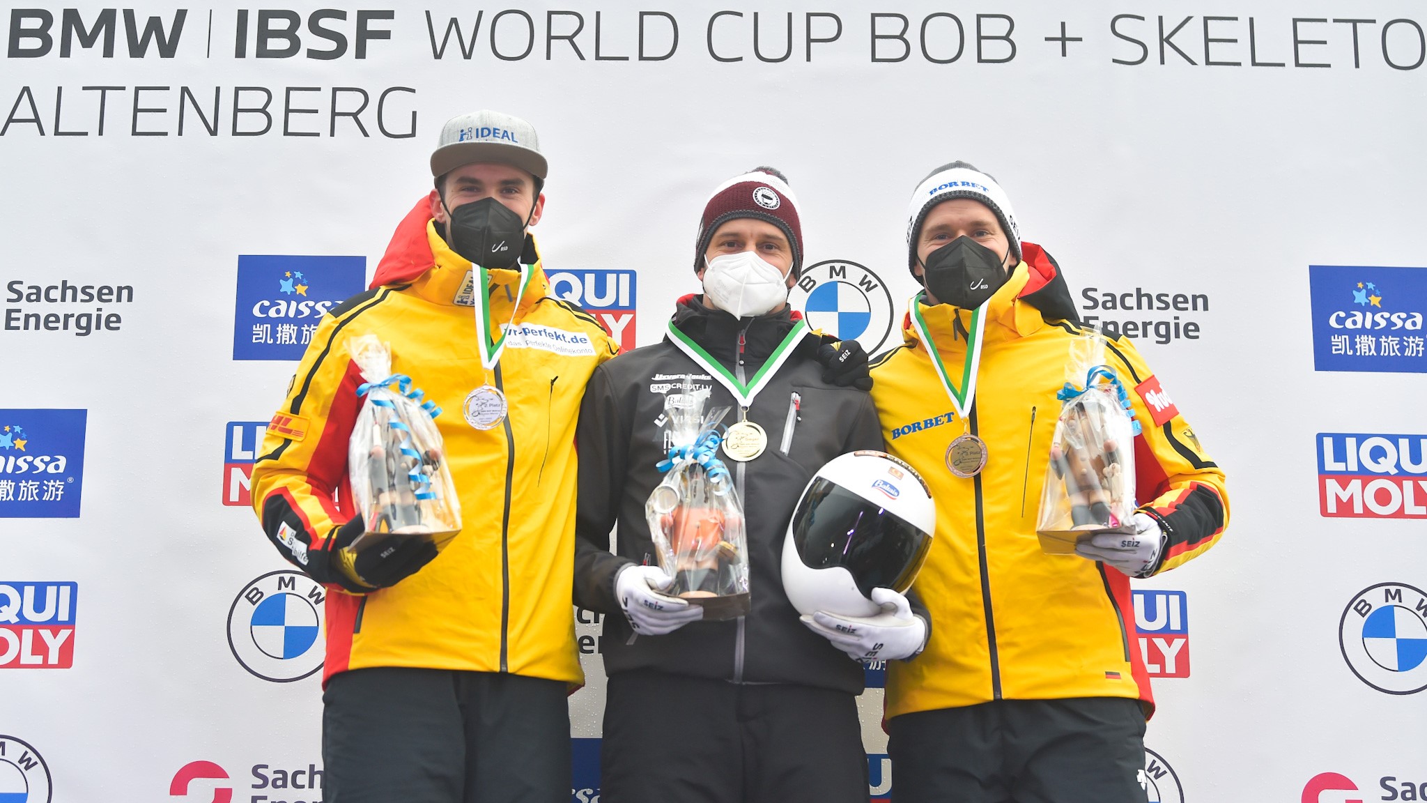 Das Podest füllte Christopher Grotheer auf Platz drei auf. Der amtierende Weltmeister, der in den vergangenen beiden Jahren in Altenberg zweimal WM-Gold gewonnen hatte, konnte seinen Zwischenrang behaupten und feierte mit 0,41 Sekunden Rückstand seinen fünften Podestplatz in diesem Winter: „Mit dem ersten Lauf war ich sehr zufrieden, und im zweiten Lauf konnte ich mich am Start noch steigern. Dafür konnte ich die Spur in der Bahn nicht so gut treffen wie im ersten Durchgang. Wenn man bei diesen Bedingungen einmal die Geschwindigkeit verliert, dann wird es sehr schwer. Aber mit Platz drei bin ich natürlich sehr zufrieden“, analysiert der Thüringer sein Rennen.