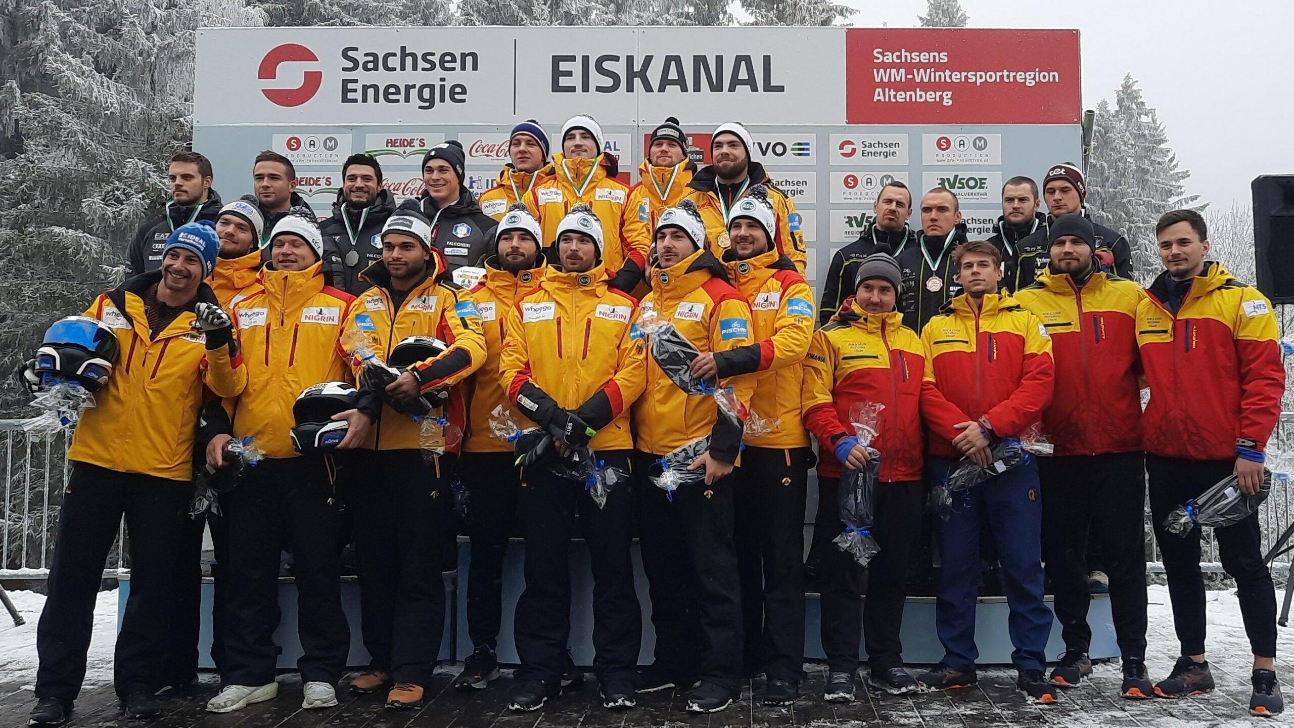 Wie beiden Frauen gab es auch im Viererbob nur ein siegreiches Team: der Thüringer Nico Semmler (BRC Ilsenburg/Harz / Anschieber: Marvin Paul, Rupert Schenk, Oliver Peschk) konnte mit vier Laufbestzeiten beide Altenberger Europacup-Rennen für sich entscheiden. Am Freitag hatte das Team Semmler einem deutlichen Vorsprung von mehr als vier Zehntelsekunden auf den Zweitplatzierten Patrick Baumgartner (ITA / Anschieber: Eric Fantazzini, Robert Mircea, Lorenzo Bilotti). Nur eine Hundertstelsekunde hinter dem Italiener auf Rang drei landete das Team des Letten Emils Cipulis (Anschieber: Davis Springis, Matiss Miknis, Krists Lindenblats), das in beiden Läufen die besten Startzeiten ablieferte. Lokalmatador Maximilian Illmann (BSC Sachsen Oberbärenburg / Anschieber: Lukas Koller, Joshua Tasche, Philipp Wobeto) fehlten nach einem unsauberen ersten Lauf und einer Angriffsfahrt im zweiten Durchgang gerade einmal drei Hundertstelsekunden aufs Podest.