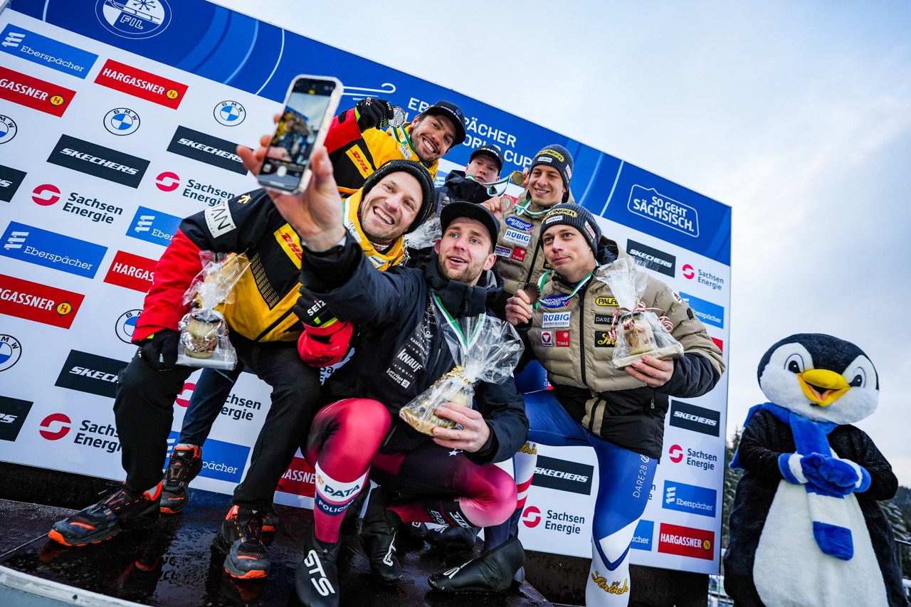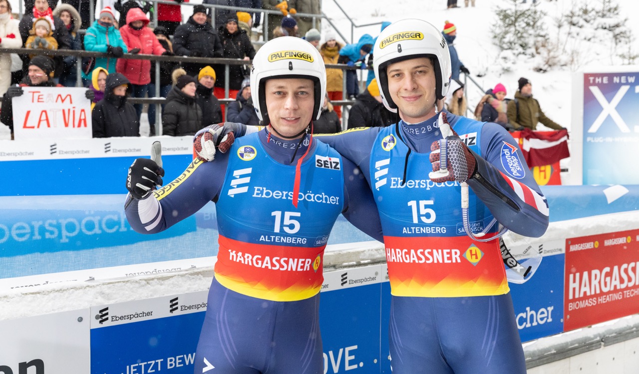 Martins Bots und Roberts Plume waren die Souveränen beim Doppelsitzer-Rennen der Herren beim EBERSPÄCHER Rodel Weltcup am SachsenEnergie-Eiskanal. Die beiden Letten fuhren unangefochten in 1:23,900 Minuten zum Sieg. Klar, dass sie damit die Führung in der Weltcupwertung verteidigen konnten und sich hinterher zufrieden zeigten. Aber auch ein klein wenig überrascht.