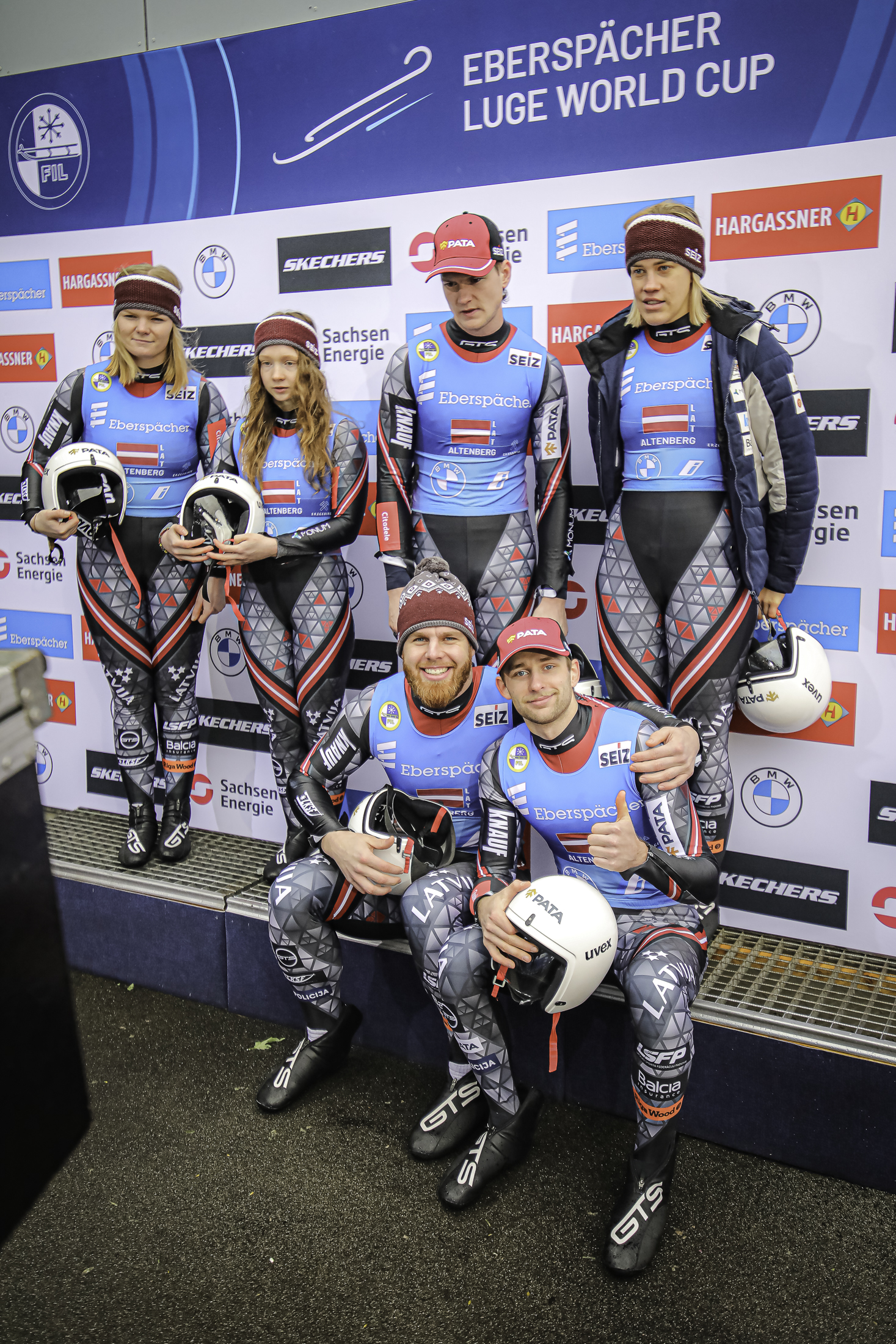 Dieses Podium hat Seltenheitscharakter: Lettland vor Team USA und Rumänien. Beim EBERSPÄCHER Team-Staffel-Weltcup presented by BMW sorgten die Wetterbedingungen für dieses besondere Ergebnis. Für das lettische Team, das mit Elina Vitola, Martins Bots/Roberts Plume, Kristers Aparjods und Anda Upite/Kitija Bogdanova gestartet war, war es der sechste Sieg im 80. Staffelrennen der Weltcup-Geschichte. 3:14,445 Minuten benötigen die sechs Athletinnen und Athleten. „Mein Team hat sich sehr gut präsentiert“, sagte Zintis Saicans, Lettlands Cheftrainer, voller Stolz, „wir hatten ein tolles Wochenende mit vielen Podestplätzen.“ Drei an der Zahl in vier Wettbewerben. Lediglich Martins Bots und Roberts Plume schafften es als Vierter im Doppel nicht aufs Podest. Kristers Aparjods, Dritter bei den Herren war es dann, der für einen kleinen Spannungsmoment sorgte, als er mir größter Mühe im Seitendrift das Touchpad traf.