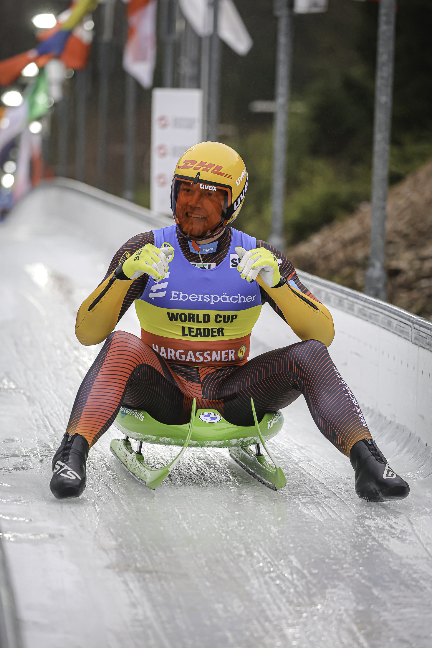 Max Langenhan konnte es nicht fassen, dass der 24 Jahre alte Deutsche beim EBERSPÄCHER Rodel Weltcup am SachsenEnergie-Eiskanal in Altenberg seinen 13. Weltcupsieg holen würde. Auf Platz 21 wurde er nach dem ersten Lauf in der Ergebnisliste geführt. Mit 0,881 Sekunden Rückstand auf den Führenden David Gleirscher. Doch dies war bei sechs Grad plus und leichtem Nieselregen sein Vorteil für den zweiten Durchgang. So konnte der Weltmeister deutlich früher in die Bahn als sein österreichischer Konkurrent. Und den nutzte er mit der schnellsten Laufzeit in 54,802 Sekunden. Gleirscher war später etwas mehr als eine Sekunde (55,804) langsamer. In der Addition beider Läufe fehlten ihm 0,121 Sekunden. „Schade, dass das Eis so nachgelassen hat, als letzter Starter hatte ich keine Chance mehr ranzukommen“, sagte Gleirscher, der sich über diesen zweiten Platz nicht so richtig freuen konnte.
