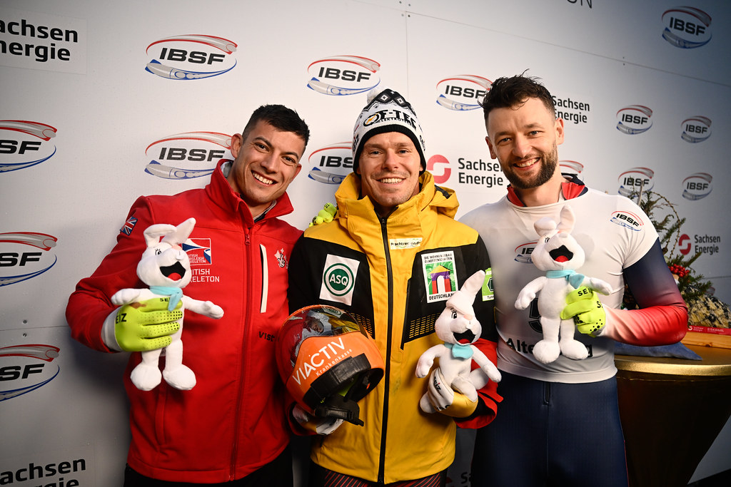 Zweiter wurde einmal mehr der Brite Matt Weston, auf Rang drei dessen Teamkollege Marcus Wyatt. Ganz knapp am Podest vorbei fuhr der Olympiazweite und Lokalmatador Axel Jungk auf seiner Heimbahn auf den vierten Rang. Junioren-Weltmeister Lukas Nydegger (RC Berchtesgaden) und Austin Florian (USA) komplettierten die Top 6. Insgesamt waren beim vierten Saisonrennen zum IBSF Weltcup 33 Athleten aus 15 Nationen am Start.