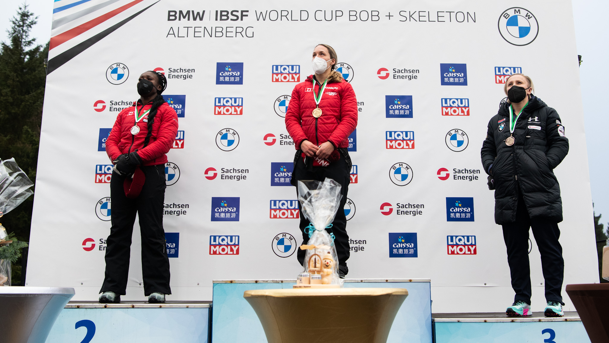 Mit ihrem zweiten Platz in Altenberg ist Cynthia Appiah (CAN, 996 Punkte) die neue Führende in der Frauen-Monobob Weltserie. Laura Nolte (GER), Vierte in Altenberg, folgt mit 994 Punkten knapp dahinter auf Rang zwei. Elana Meyers Taylor aus den USA (979), die mit zwei Siegen in die Saison gestartet war, wurde in Altenberg Zwölfte und fiel damit von Platz eins auf den dritten Rang zurück.