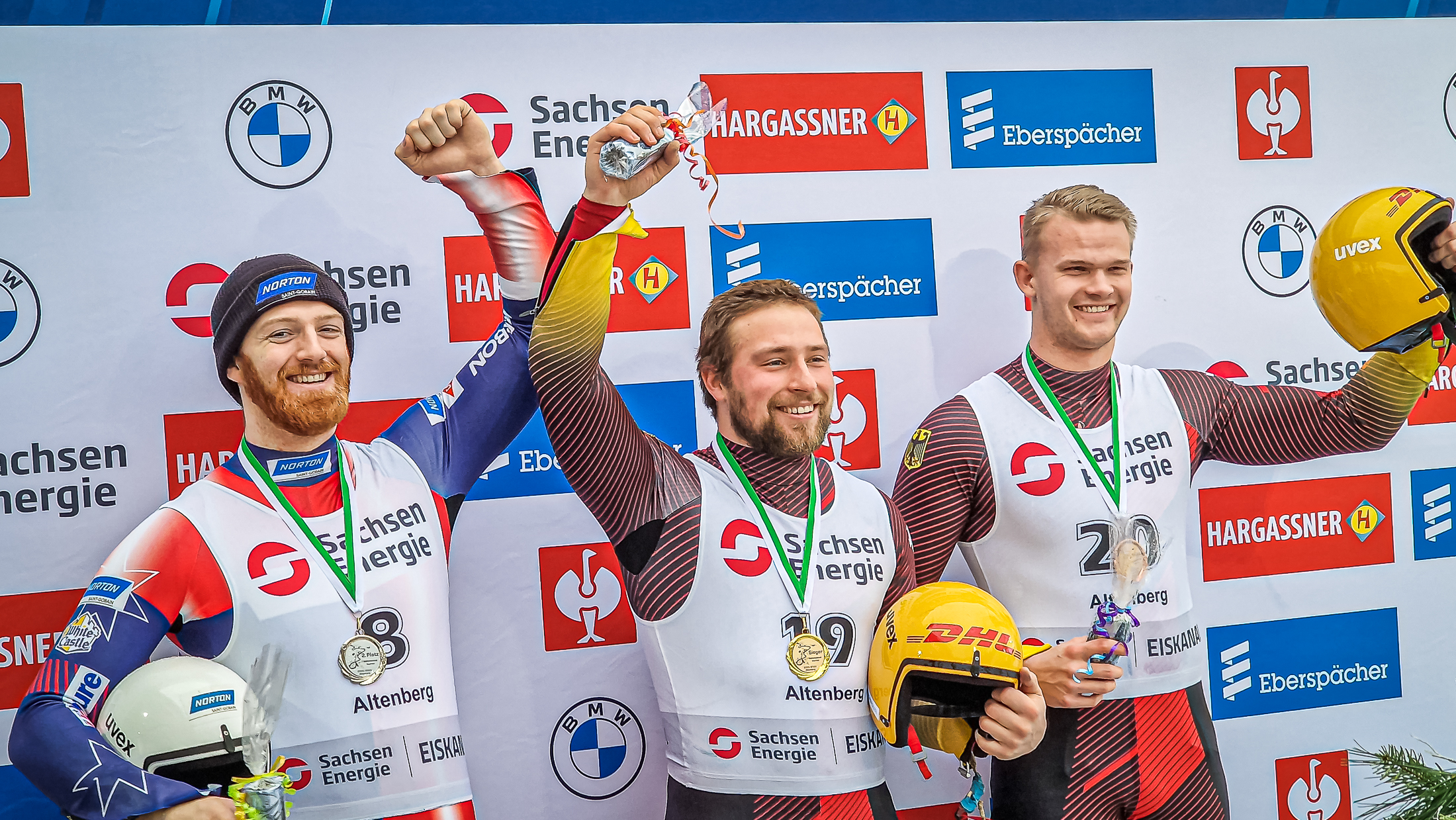 „Mein Lauf heute war nicht so schlecht für die Bedingungen mit dem Regen und starken Wind. Den Mittelteil kann man noch besser fahren, doch ich habe heute gewonnen und mehr kann ich bei meinem einzigen internationalen Einsatz der Saison nicht machen“, so Sieger Bley. Auch Jonny Gustafson trotzte dem Wetter: „Mein Lauf war nicht allzu schlecht heute, aber ich muss noch einige Dinge für das Weltcuprennen am Sonntag verbessern um schneller zu werden. Altenberg ist immer cool. Ich fahre hier sehr gerne. Wenn man hier richtig angreift, kann man einiges erreichen. Normalerweise liegt der Spaß daran, dass es sehr schnell ist. Aber heute war die Bahn ein bisschen weniger schnell und es war eher ruhig und cool zu fahren. Es war eine andere Art von Spaß, doch es hat mir auch gut gefallen“.