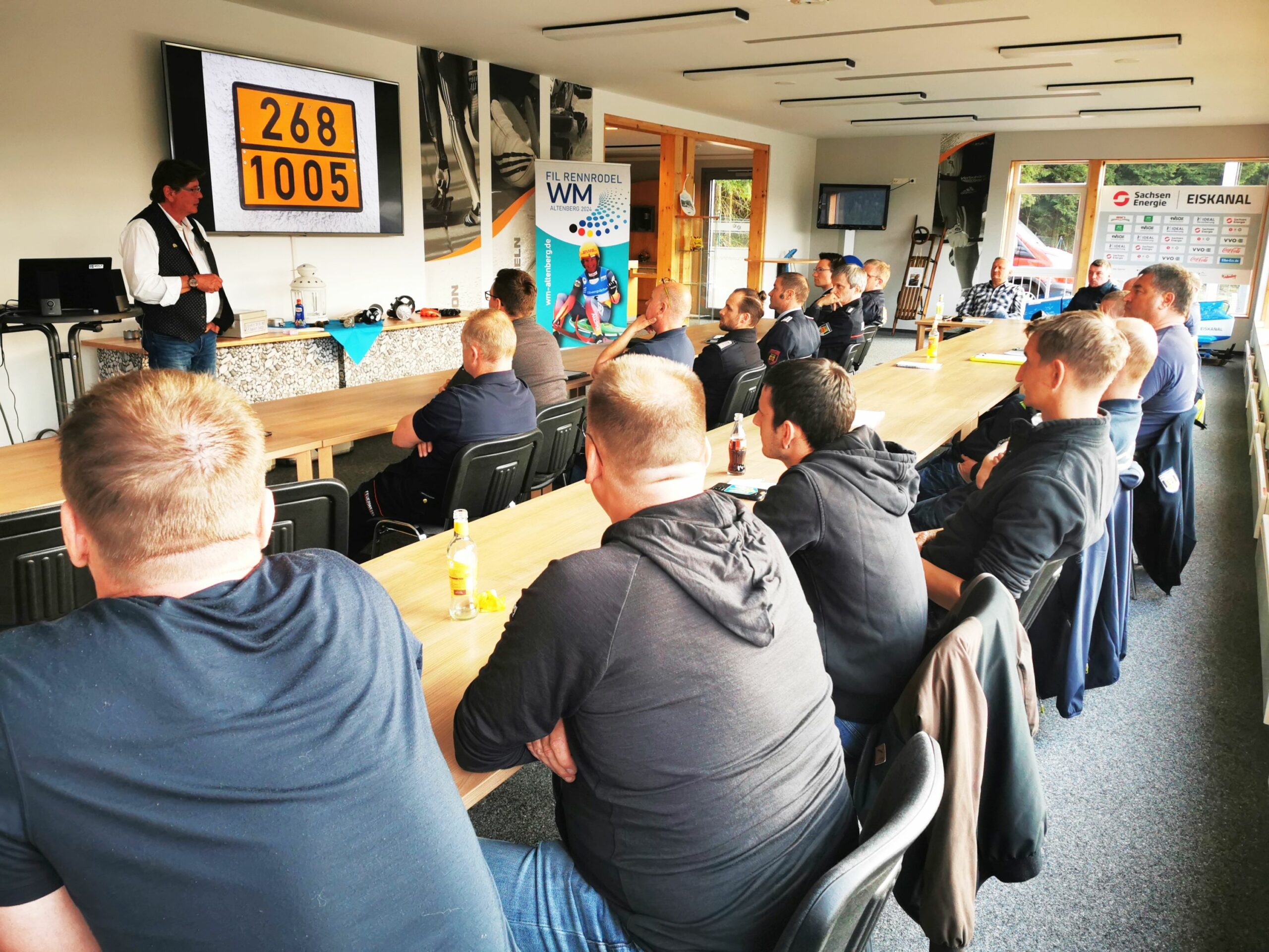 Passend zum „internationalen Tag der Feuerwehrleute“ am 4. Mai veranstaltete der Wintersport Altenberg (Osterzgebirge) GmbH gemeinsam mit Hans-Peter Wolf zusätzlich eine Schulung speziell für die Einsatzkräfte der Feuerwehren, die im Alarmierungsfall zum Einsatz an die Bahn kommen. Wehrleiter und Kameraden umliegenden Ortswehren, Gemeindewehrleiter, Kreisbrandmeister und den Gefahrstoffzug des Landkreises folgten der Einladung und erfuhren so, wie sich Ammoniak verhält und welche Maßnahmen im Ernstfall zu treffen sind.