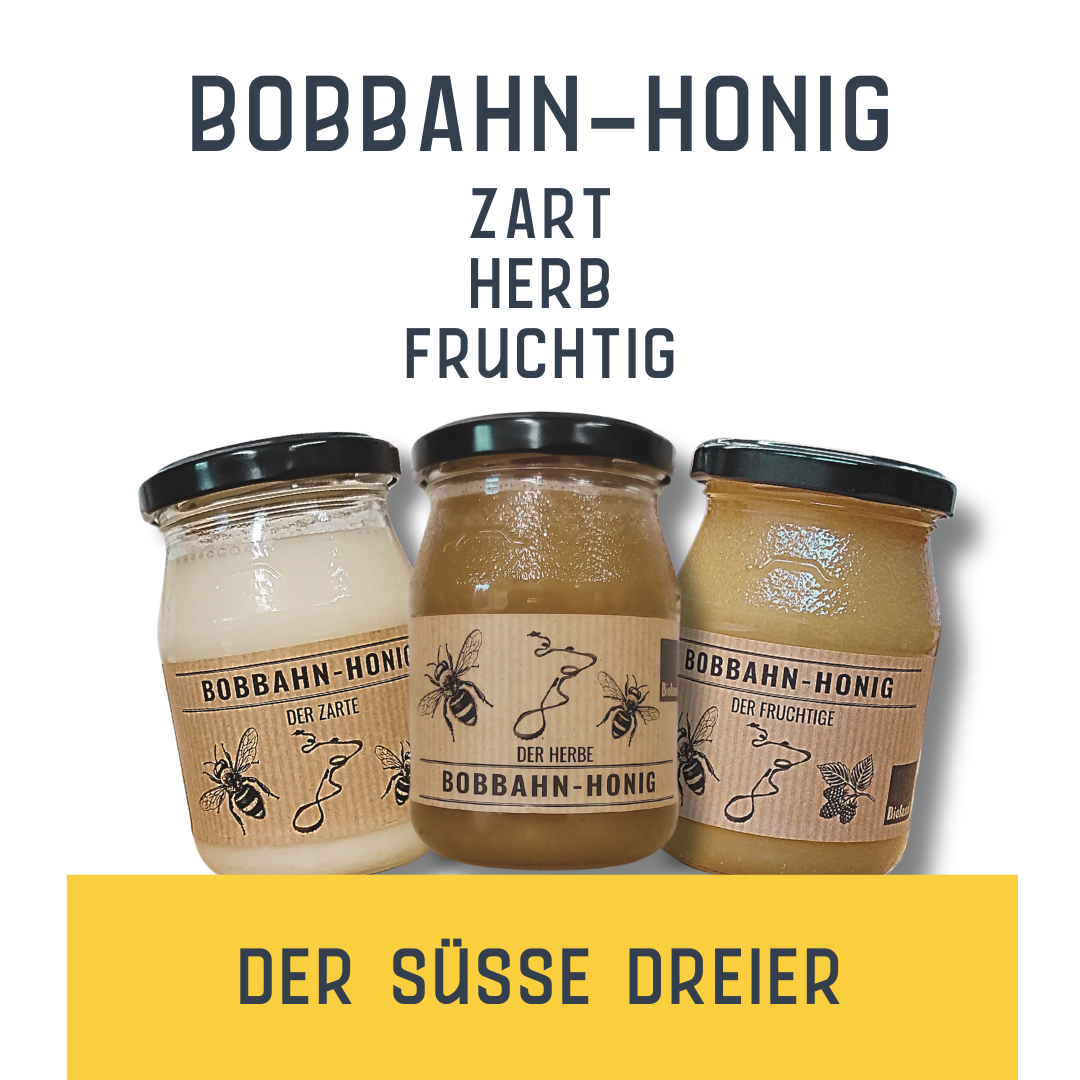 Der Süße Dreier – Drei Sorten Honig, direkt von der Rennschlitten-und Bobbahn Altenberg.
